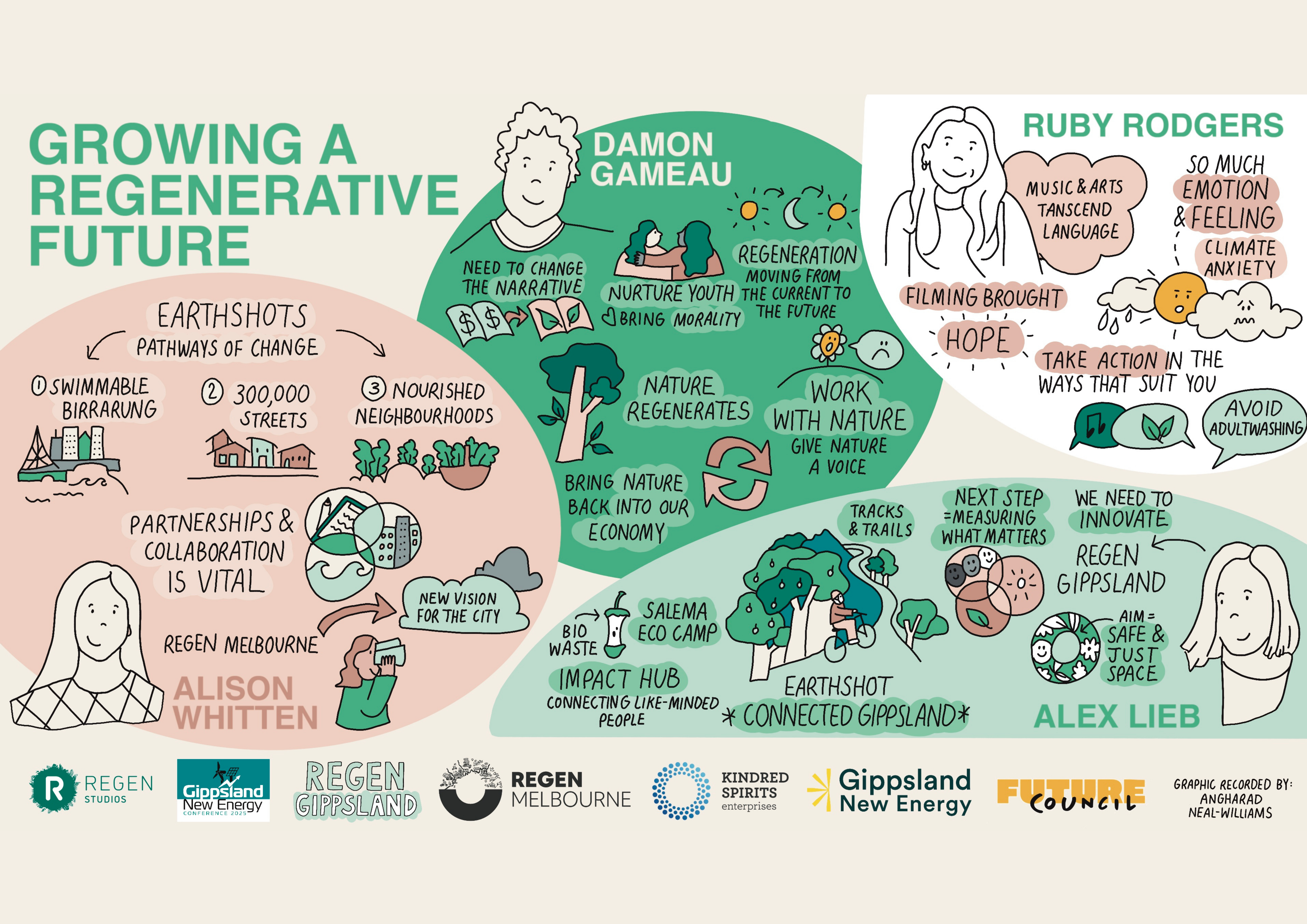 Angharad Neal-Williams is an Illustrator, graphic recorder and designer based in Naarm / Melbourne. Her distinct style combines confident line drawing with considered colours to create thoughtful and optimistic outcomes. Angharad creates designs that are clean and impactful through the use of both digital and traditional mediums. Angharad has worked for a range of clients including Metro Trains, WWF, REA Group, Twinings, Vicroads and Birdlife Australia.