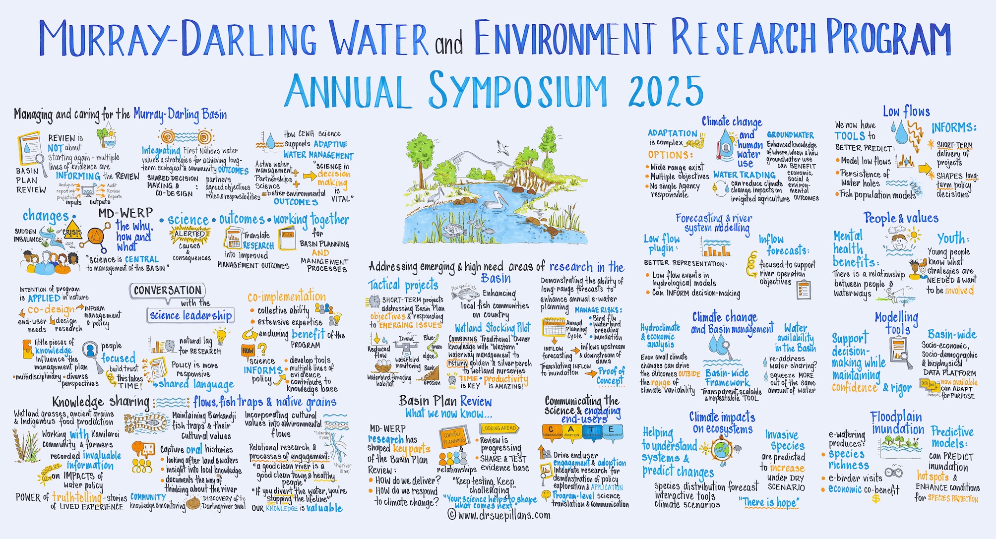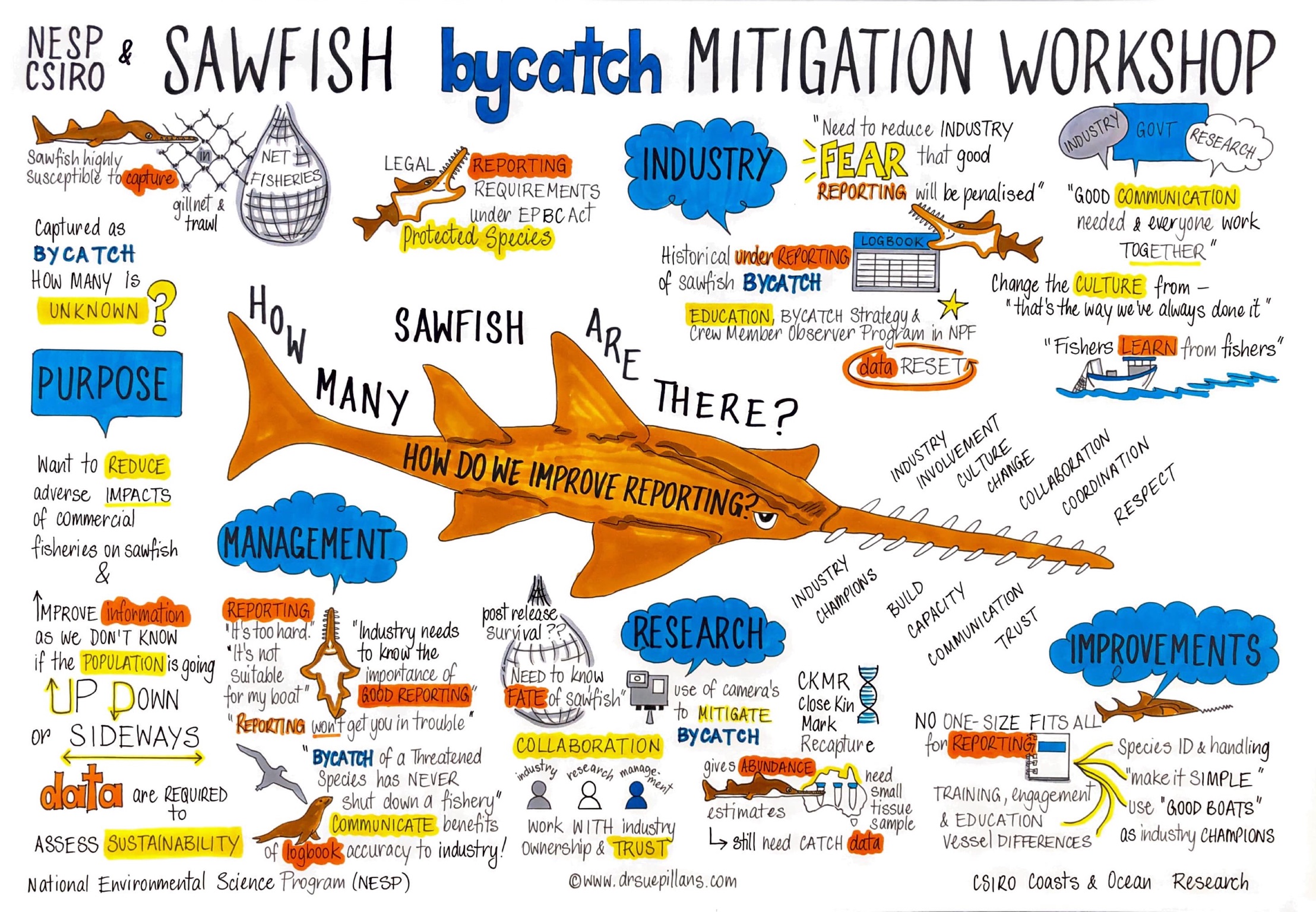 Dr Sue Pillans is a marine scientist, visual artist, children’s author/illustrator and graphic recorder specialising in creative and visual communications to help “Picture your ideas”. As an experienced graphic recorder Sue ‘draws upon’ her skills as a marine scientist and artist and combines them with her active listening skills to picture your ideas, information and concepts in real-time. Due to her scientific and research experience Sue is able to quickly synthesise and translate complex issues and information into words and...
