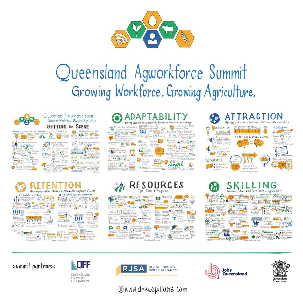 I had the pleasure of having Sue Pillans draw out my presentation. We live in the age of information, which means we are constantly switched on and constantly bombarded with new information. This makes it very hard to absorb all of the messages we need. What struck me most about Sue’s work, apart from her extraordinary talent as an illustrator, is her ability to quickly take complex verbal information and break it down in real time to pictorially represent it in an easily digestible and visually compelling way.